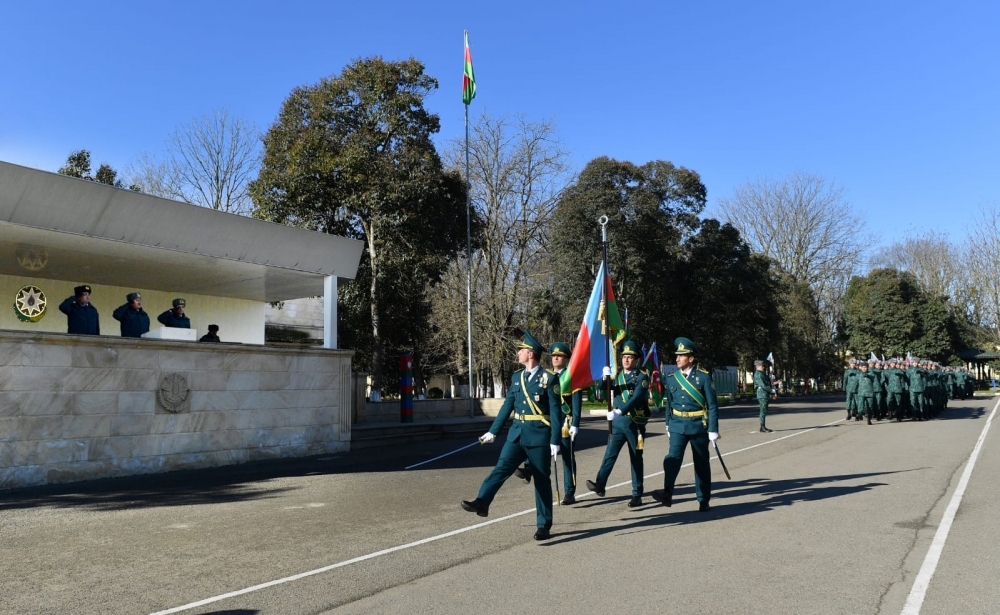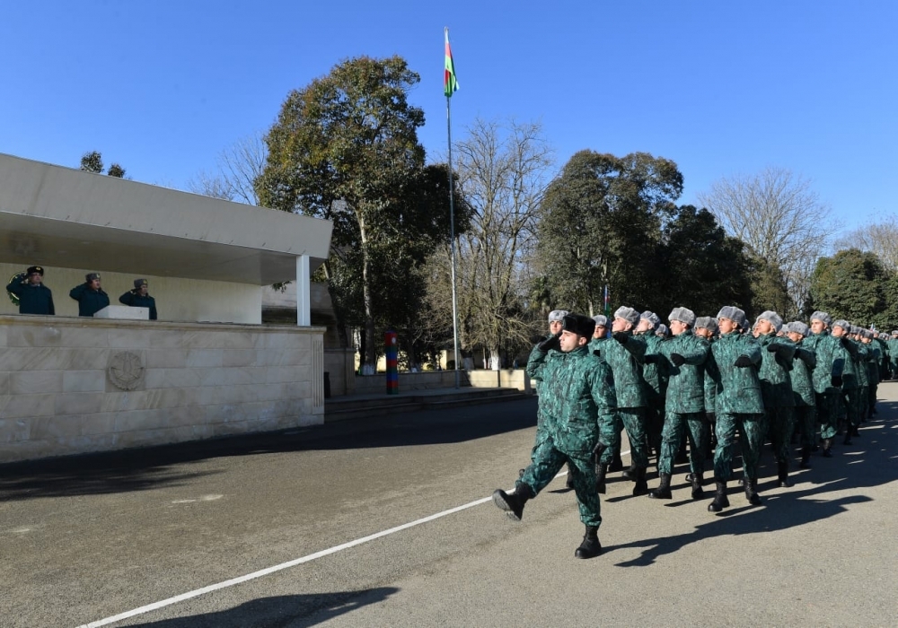 Gənc əsgərlər təntənəli şəkildə hərbi anda gətirildikdən sonra Dövlət Sərhəd Xidmətinin rəisi general-polkovnik Elçin Quliyevin təbriki şəxsi heyətə çatdırılıb.