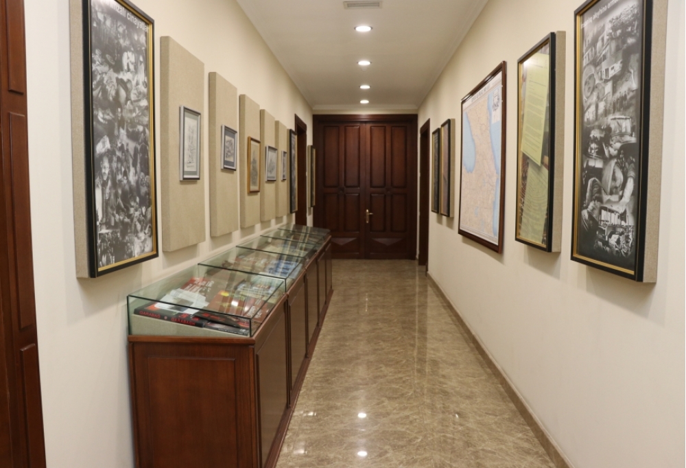 Muzeydə saxlanılan, tarixi həqiqətlər, o cümlədən Xocalı soyqırımı haqqında həqiqətləri əks etdirən eksponatlar barədə ətraflı məlumat verən hərbi prokurorun böyük köməkçisi qeyd etdi ki, muzeyin açılışı 2014-cü il fevralın 24-də olub. Muzeydə tarixi həqiqətləri əks etdirən rəsmi sənədlər və əşyalar toplanıb. 320 kvadratmetr ərazini əhatə edən muzey tarix, deportasiya-repressiya, soyqırımı və terror adlı dörd bölmədən ibarətdir. Muzey ermənilərin azərbaycanlılara qarşı törətdikləri cinayətlərin dünyada tanıdılması istiqamətində mühüm əhəmiyyət kəsb edir. Girişdə asılmış rəsm əsərləri ürəkləri parçalayan şiddətli ağrıları təcəssüm etdirməklə yanaşı, soyqırımı qurbanlarının matəm sükutunu özündə əks etdirir. “Xocalı fəryadı” adlı rəsm əsəri buna əyani sübutdur. Muzey xalqımıza qarşı törədilmiş soyqırımı, deportasiya, hərbi cinayətlər barədə xarici və Azərbaycan müəlliflərinin kitablarından ibarət zəngin ədəbiyyat fondu ilə təchiz olunub. Bütün bölmələrdə məlumat mərkəzi quraşdırılıb. Həmçinin muzeyin girişində Xocalı soyqırımının 20-ci ildönümü ilə əlaqədar 2012-ci il fevralın 26-da Prezident İlham Əliyevin rəhbərliyi ilə 100 mindən çox insanın Xətai rayonunda ucaldılmış “Ana fəryadı” abidəsinə keçirilmiş yürüşünün irihəcmli fotoşəkili yerləşdirilib.