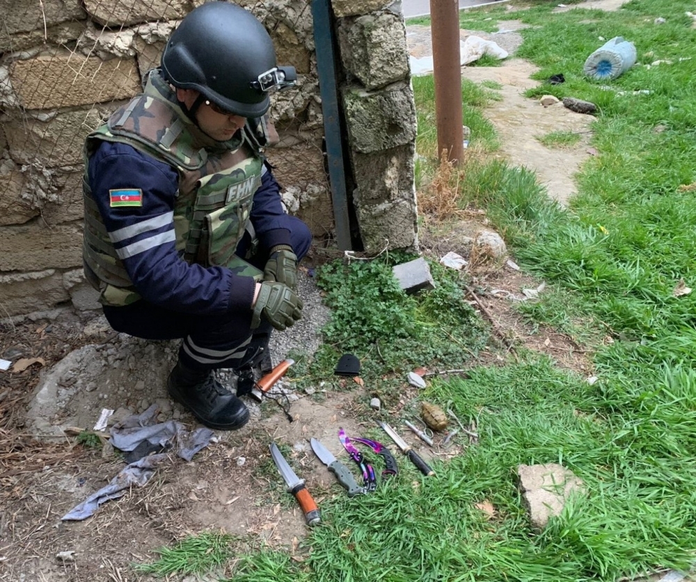 Aşkar edilmiş sursat və soyuq silahlar ərazidən götürülərək kənarlaşdırılıb.