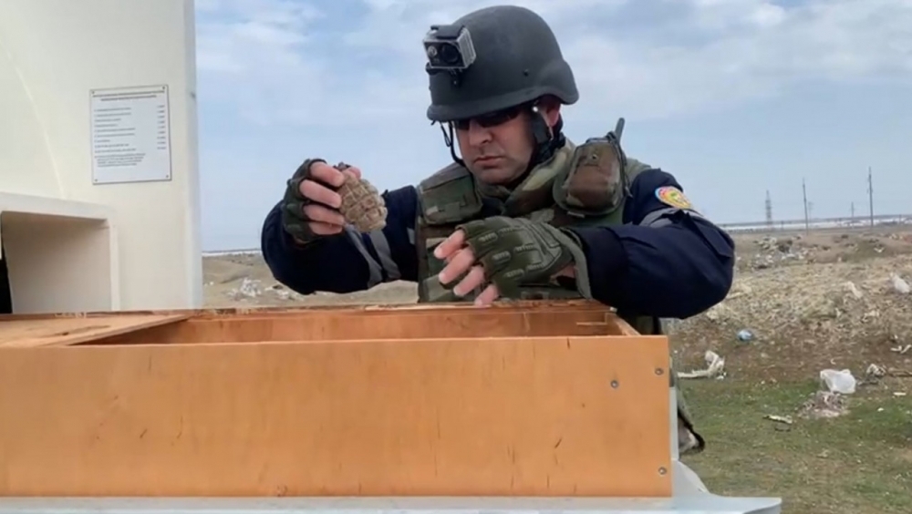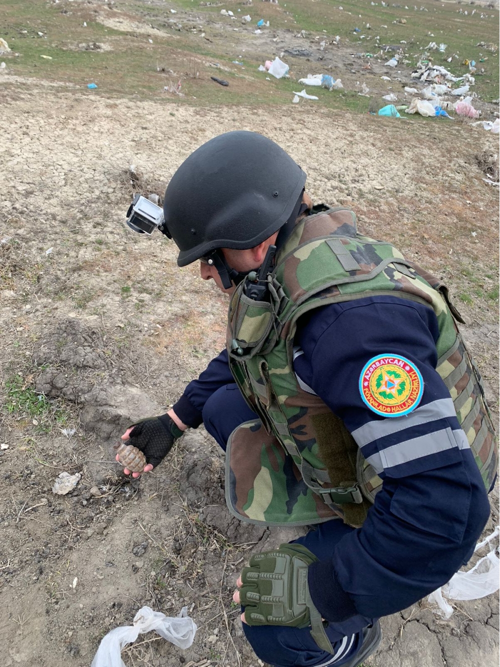 Bundan əlavə, “112” qaynar telefon xəttinə daxil olmuş zəng əsasında XRXX-nin minalardan təmizləmə üzrə çevik qrupu Siyəzən şəhərində aşkar edilmiş döyüş tətbiqinə yararlı 1 ədəd F-1 əl qumbarasını müvafiq qaydada ərazidən götürərək kənarlaşdırıb.