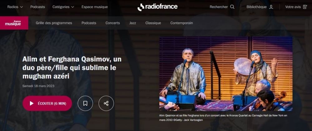 Fransanın “Radio France” radiosu Azərbaycan muğamı və ustad xanəndə Alim Qasımov barədə material hazırlayıb.