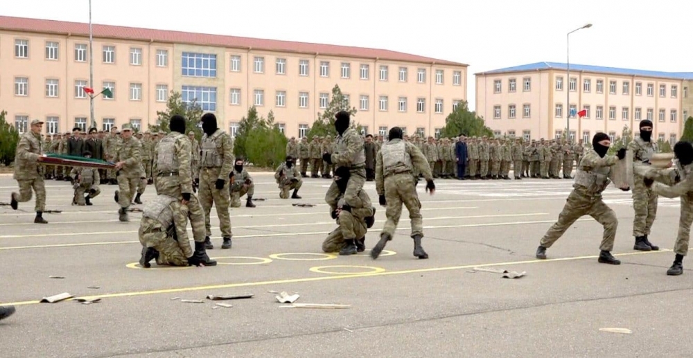 Mərasimdə ixtisas hazırlığı kursunu başa vurmuş əsgərlər fiziki hazırlıq üzrə silahlı və silahsız çalışmalar kompleksini, müxtəlif atıcı silahların gözübağlı vəziyyətdə natamam sökülüb yığılmasını, minaatan qurğuların döyüşə və səfər vəziyyətinə gətirilməsini, mina sahəsinin qurulmasını və keçidlərin açılmasını, rabitə vasitələri ilə fəaliyyət göstərilməsini, kəşfiyyat hazırlığından müxtəlif elementləri praktiki yerinə yetiriblər.