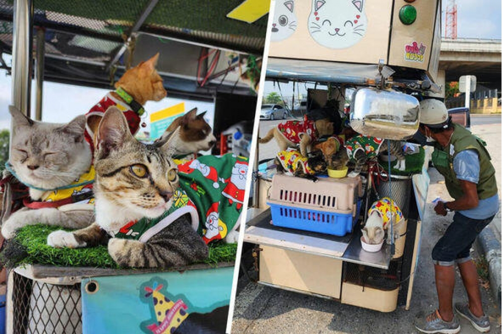 Çuvonq Tepko yerli sosial mediada məhz bu pişik arabası sayəsində məşhurlaşıb. Bu yaxınlarda taylandlı yenidən ev heyvanları ilə birlikdə 300 kilometrlik səyahətə çıxıb. Yerli könüllülər kişiyə maddi yardım ediblər və o, həmin pulla pişik arabası alıb.