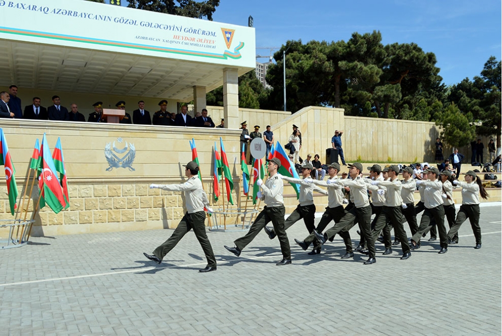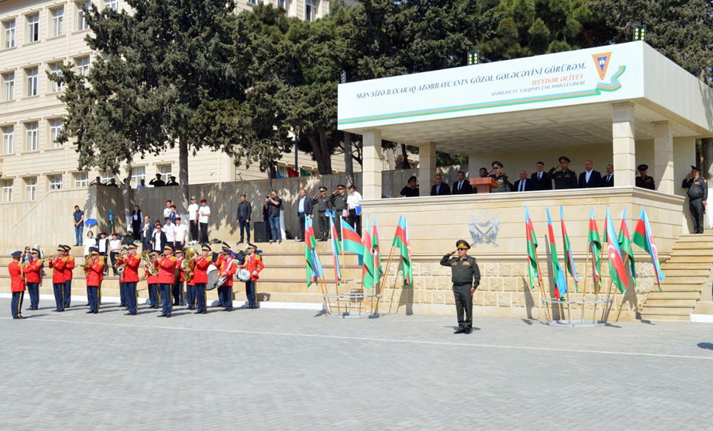 Rəsmi mərasimdən sonra hərbi liseyin kursantları və məktəblilər hərbi orkestrin ifası altında təntənəli marşla tribuna önündən keçiblər.