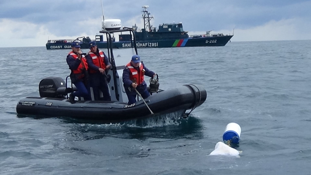 Astara reydində olan Sahil Mühafizəsinin gözətçi gəmisi tərəfindən Xəzər dənizinin Azərbaycan Respublikasının ərazi sularında sahildən 12 mil məsafədə sənaye üsullu lövbərə bağlanmış bir ədəd kisə aşkar edilmişdir.