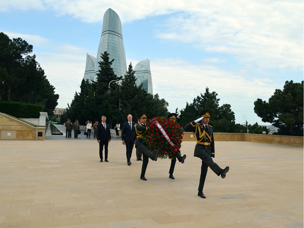 Nümayəndə heyəti əvvəlcə Fəxri xiyabanda Ümummilli Lider Heydər Əliyevin, Şəhidlər xiyabanında ölkəmizin müstəqilliyi, ərazi bütövlüyü uğrunda şəhid olmuş vətəndaşlarımızın məzarlarını ziyarət edərək “Əbədi məşəl” abidəsinin önünə əklil qoyub.