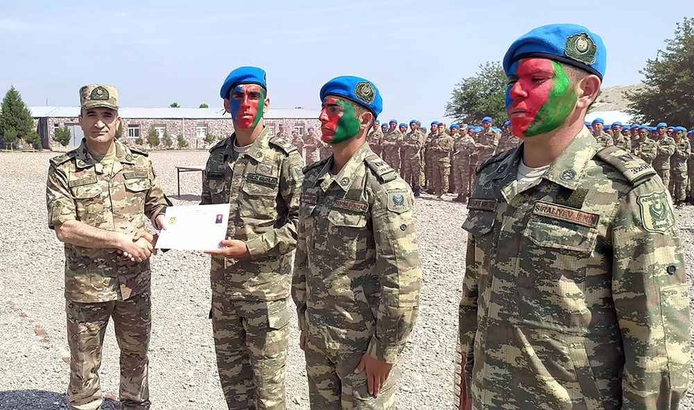 Hərbi qulluqçulara sertifikatlar təqdim olunduqdan sonra şəxsi heyət təntənəli marşla tribuna önündən keçib.