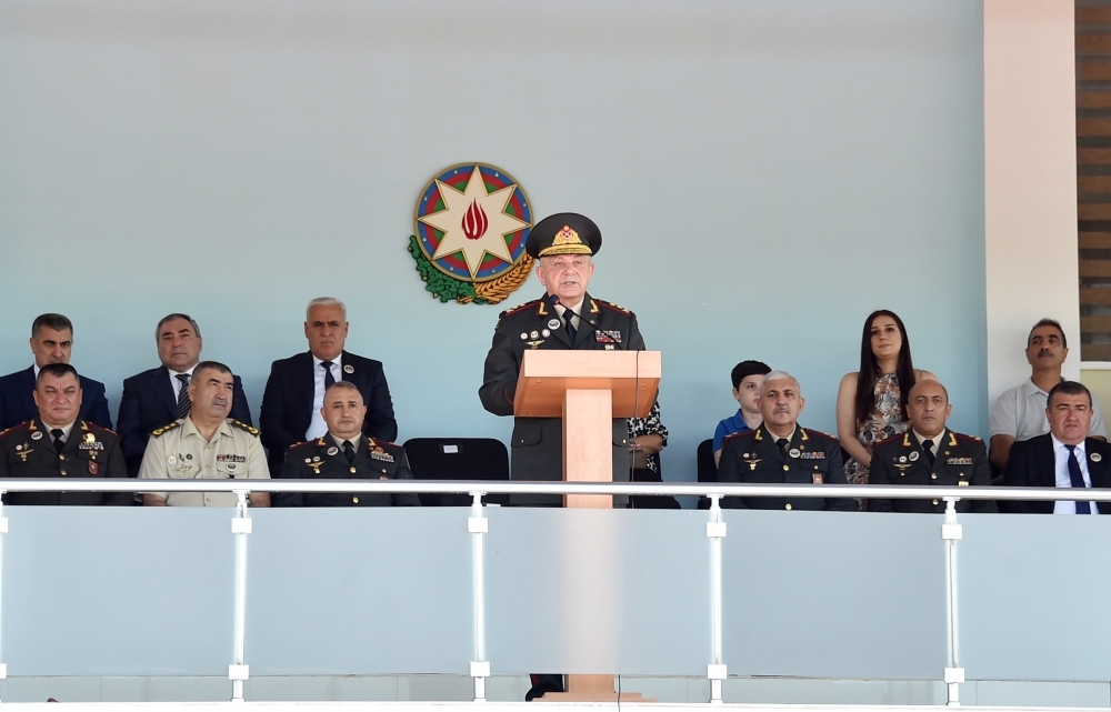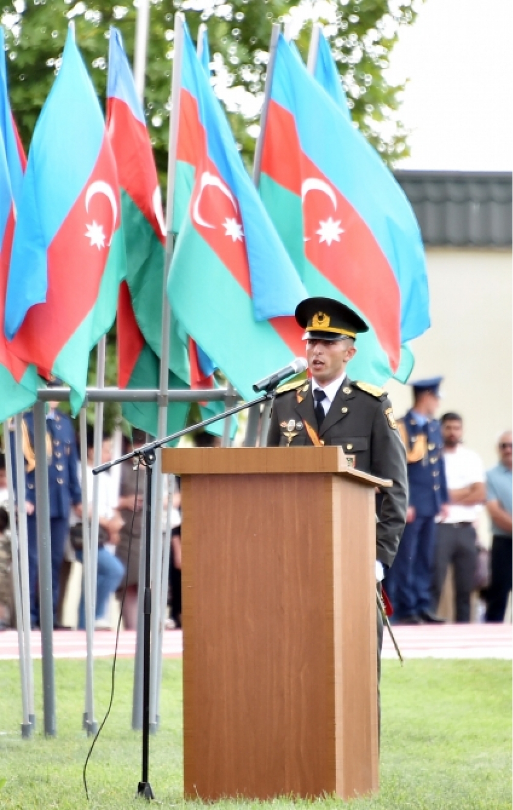 Milli Müdafiə Universitetinin rektoru professor, general-leytenant Heydər Piriyev çıxış edərək mərasim iştirakçılarını salamlayıb, gənc zabitləri Müdafiə Nazirliyinin rəhbərliyi adından təbrik edib, onlara xalqımıza, dövlətimizə, qalib ordumuza və Ali Baş Komandanımıza layiqli zabit olmağı arzulayıb.
