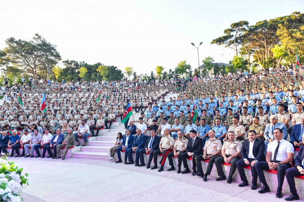 “İki sahil” xəbər verir ki, Xətai rayon İcra Hakimiyyətinin başçısı Rafiq Quluyev, H.Əliyev adına Hərbi İnstitutun rəisi general-mayor Fizuli Salahov, Vətən Müharibəsi Qəhrəmanları Nizami Mövlanov, Zaur Hüseynov, Zaur Quliyev, İlqar Orucov, Dövlət Təhlükəsizlik Xidməti Xətai rayon İdarəsinin rəisi Hümbət Əliyev, şəhid atası, Xalq artisti Əli Nur, əməkdar artist Azad Şükürov, rayonun idarə, müəssisə və təşkilat rəhbərlərinin, şəhid ailələrinin, qazilərin, Milli Müdafiə Universitetinin kursantlarının, ziyalıların və sakinlərin qatıldığı tədbirdə əvvəlcə Azərbaycan Respublikasının Dövlət himni səsləndirilib, torpaqlarımızın ərazi bütövlüyü uğrunda həlak olmuş şəhidlərimizin əziz xatirəsi bir dəqiqəlik sükutla yad edilib.