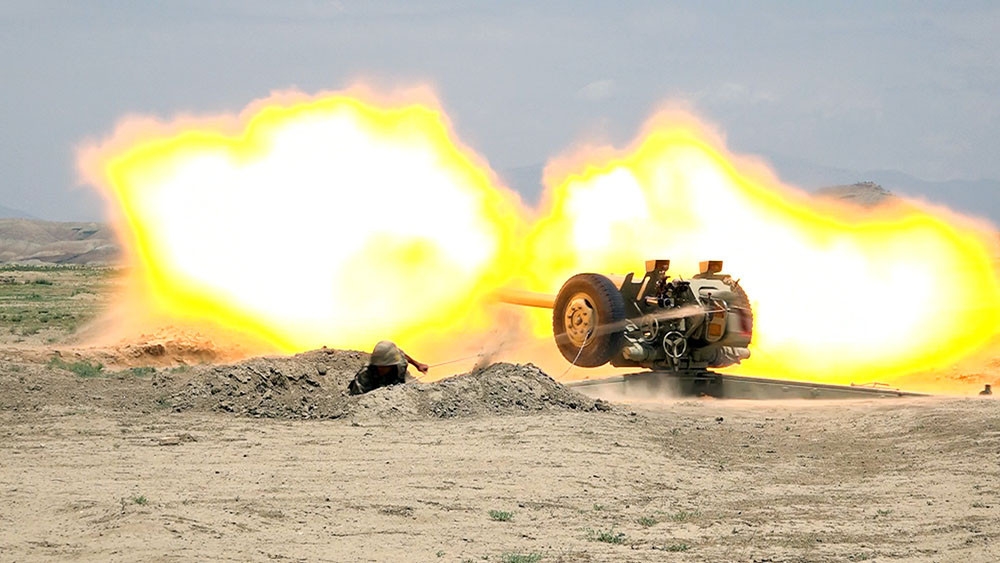 Real döyüş şəraitinə uyğun keçirilən təlimdə artilleriya və minaatan bölmələri şərti düşmən hədəflərini aşkar edərək sərrast atəşlə məhv edib.