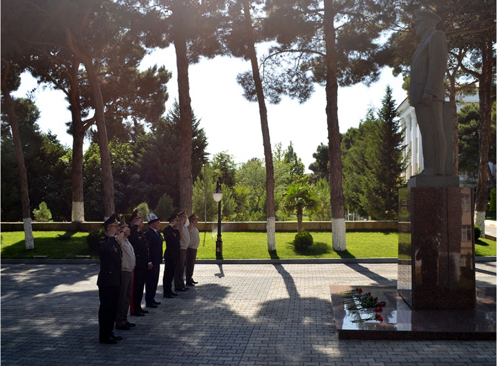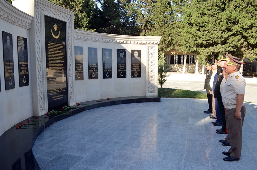 Azərbaycan xalqının Ümummilli Lideri Heydər Əliyevin hərbi institutun ərazisində ucaldılmış abidəsi və Vətən Müharibəsində şəhid olmuş hərbi qulluqçularımızın xatirəsinə salınmış abidə kompleksi ziyarət olunub, önünə gül dəstələri qoyulub.