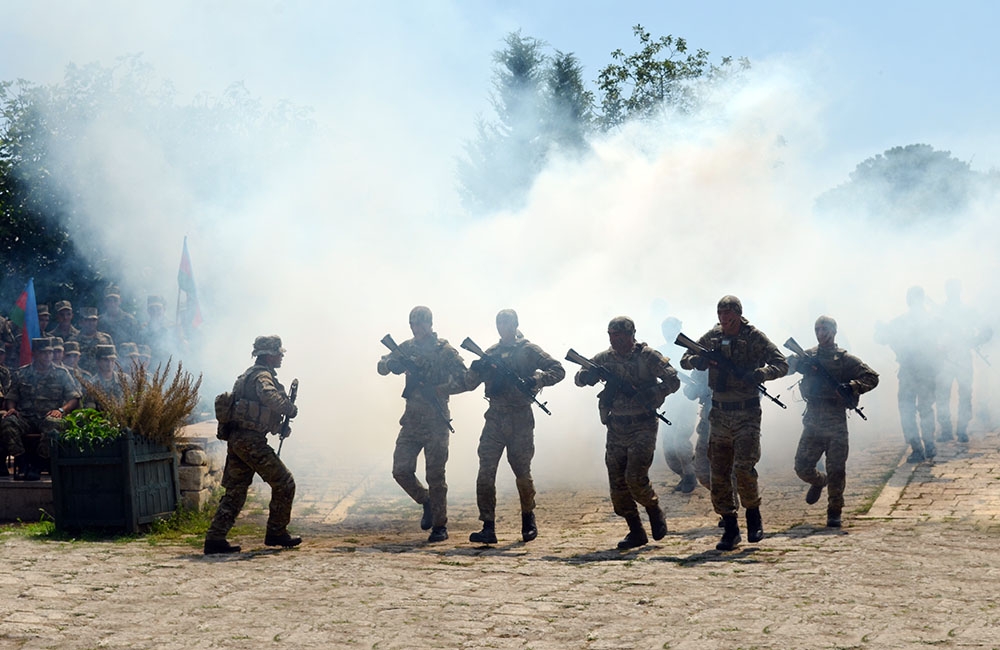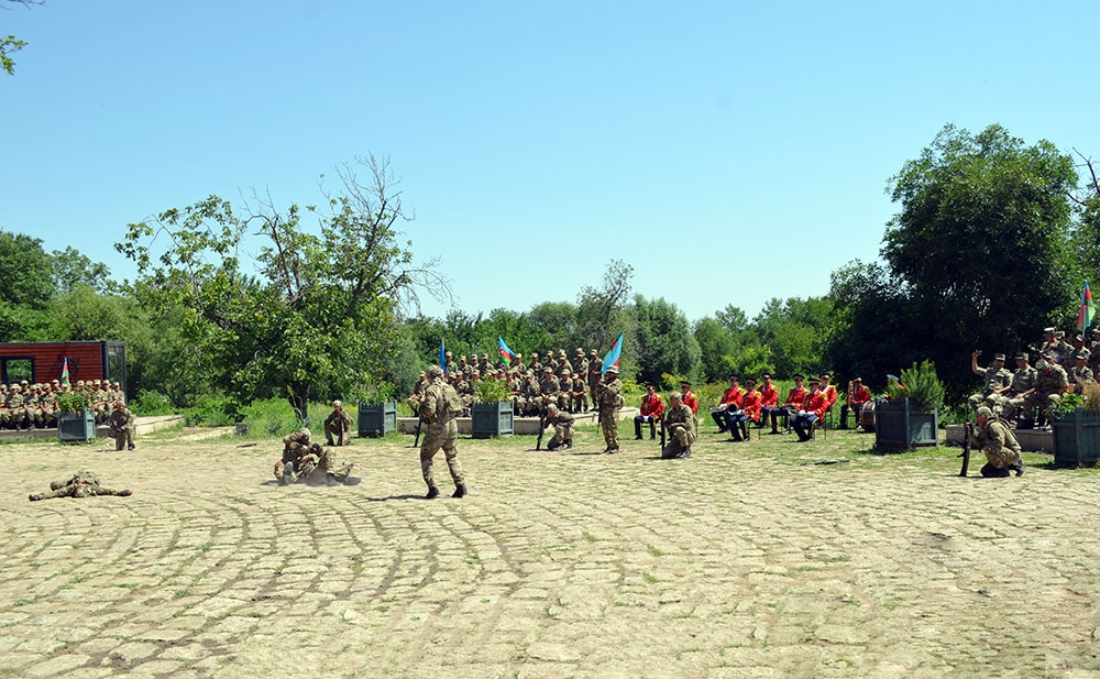 Sonra komandoların nümunəvi çıxışları izlənilib, incəsənət nümayəndələrinin iştirakı ilə konsert proqramı təqdim olunub.