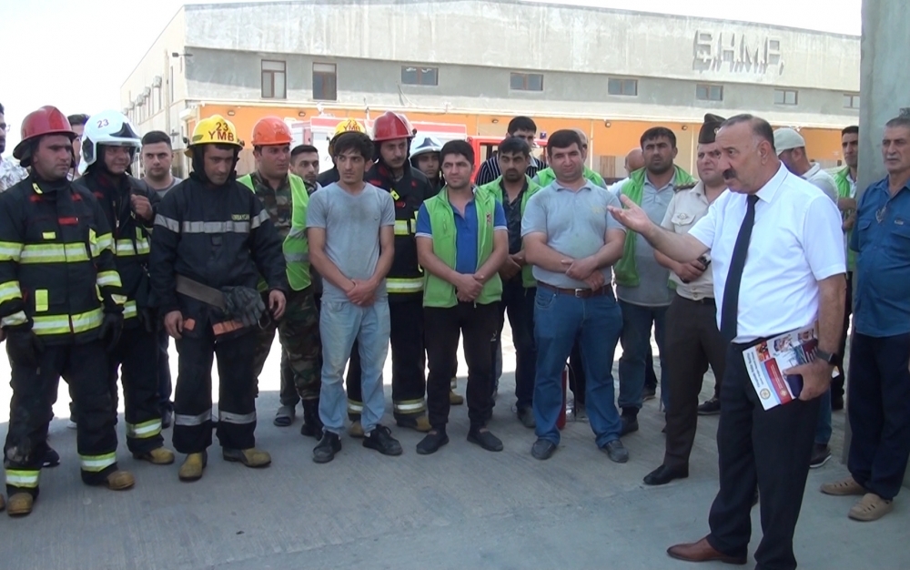 Fövqəladə Hallar Nazirliyinin Dövlət Yanğından Mühafizə və Dövlət Yanğın Nəzarəti xidmətlərinin birgə təşkilatçılığı ilə Bakı şəhəri, Sabunçu rayonunun Maştağa qəsəbəsi ərazisində fəaliyyət göstərən “Dinçer və Carçıoğlu” MMC-yə məxsus anbar sahəsində “Fövqəladə hallar zamanı davranış qaydaları və təxliyə” mövzusunda təlim keçirilib.