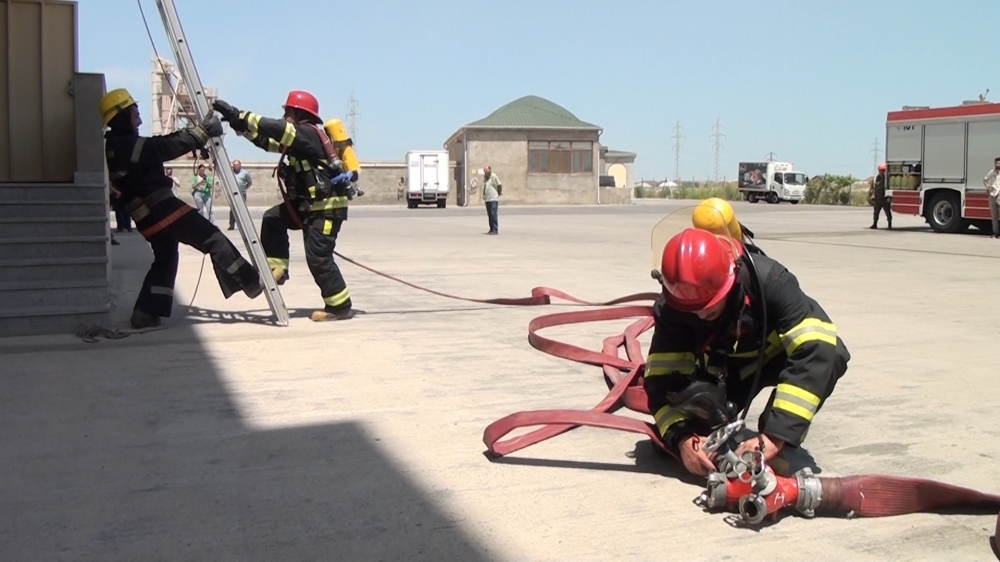 Təlimin praktiki hissəsində şərti yanğın zamanı “Həyəcan” siqnalı verildikdən sonra Sabunçu rayonu DYMH-nin 23 saylı Yanğından Mühafizə Bölməsinin yanğınsöndürənləri operativ qaydada hadisə yerinə çataraq, “yanğınla mübarizə” tədbirlərinə başlayıblar. Şərti yanğın baş vermiş anbar sahəsində təxliyə planına uyğun olaraq əməkdaşların təhlükəsiz yerə təxliyəsi həyata keçirilib, şərti xəsarət almış əməkdaşlara “ilkin yardım göstərilib”, şərti yanğın qısa müddətdə “söndürülüb”.