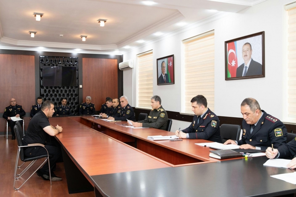 Səfər çərçivəsində general-polkovnik V.Eyvazov bölgə üzrə polis orqanlarında sıravi və kiçik rəis heyətinə xidmətə qəbulla bağlı sıra baxışı keçirib.