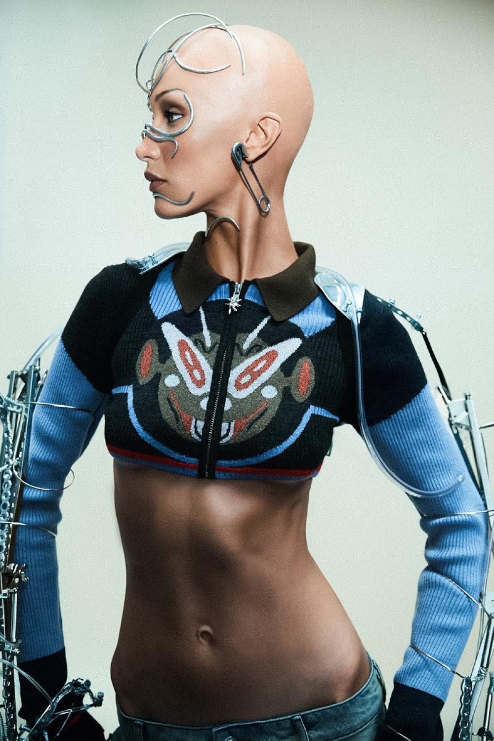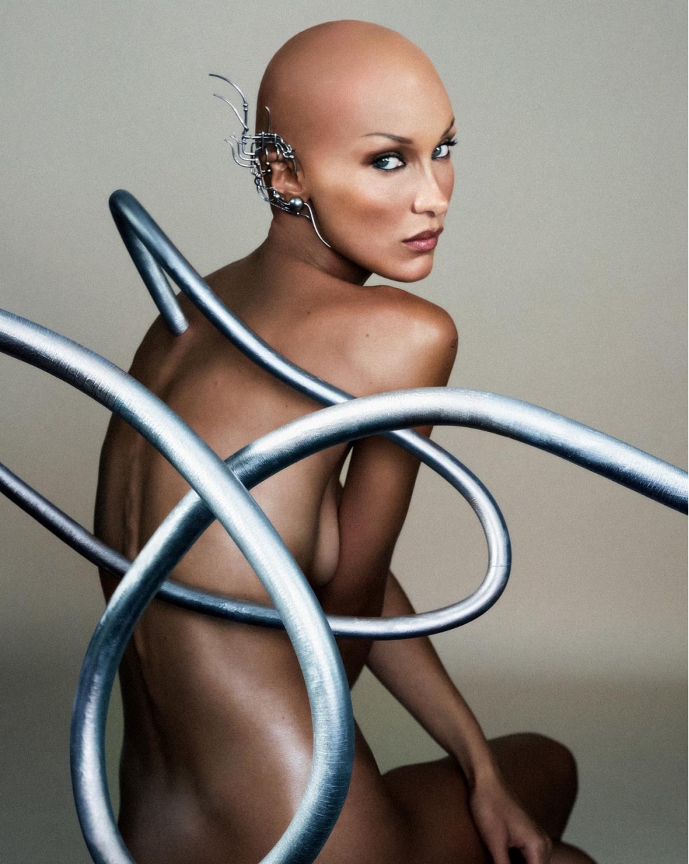 “İki sahil” xəbər verir ki, model görünüşü ilə diqqət çəkib. Keçəl formada kamera qarşısına keçən Bella bir növ robot obrazını canlandırıb.