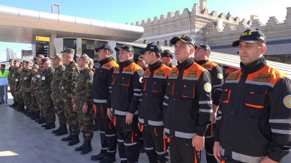 Belə ki, Bakı şəhəri ərazisində baş vermiş şərti zəlzələnin nəticələrinin aradan qaldırılması məqsədilə hadisə yerinə FHN-in Bakı Regional Mərkəzinin və Xüsusi Riskli Xilasetmə Xidmətinin xüsusi təyinatlı texnikaları və şəxsi heyəti ilə yanaşı, xüsusi təlim görmüş itlər, ADY-nin mülki müdafiə qüvvələri, o cümlədən 2 yanğınsöndürən qatar və müvafiq nəqliyyat vasitələri cəlb olunub.