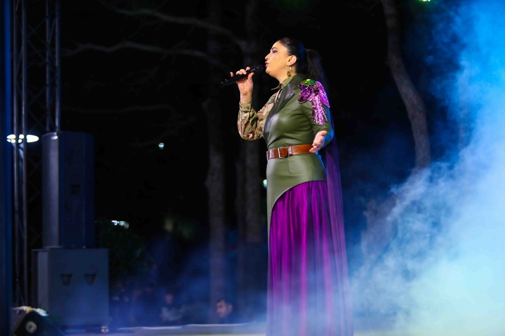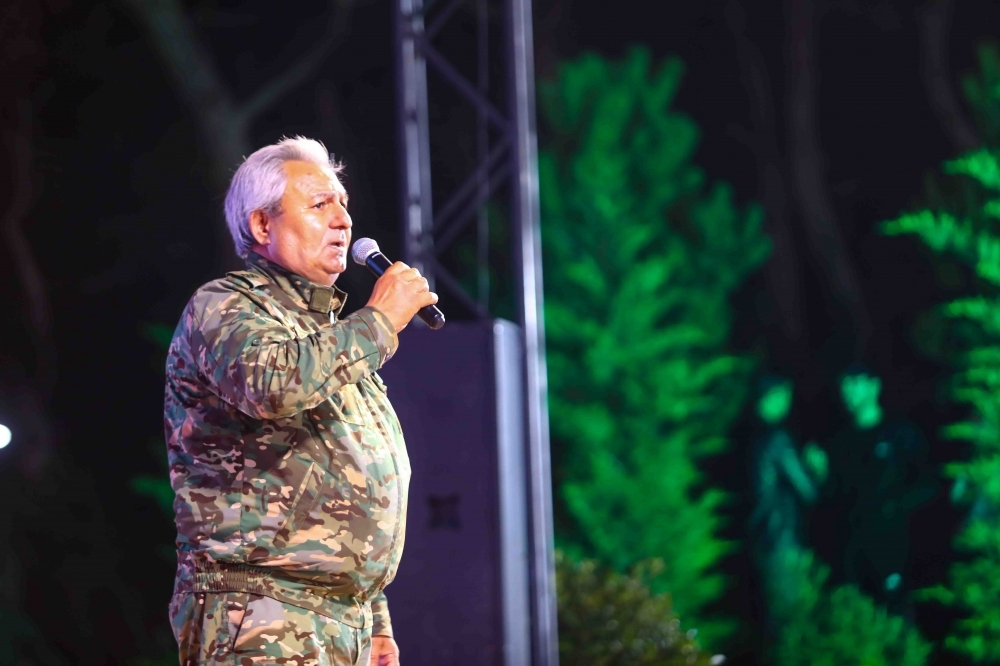 Sonda hərbi vətənpərvərlik mahnılarının mahir ifaçısı, “Vətənpərvərliyin Təbliğinə Dəstək” İctimai Birliyinin sədri Şəmistan Əlizamanlı tamaşaçılara möhtəşəm mahnılarını təqdim etdi.