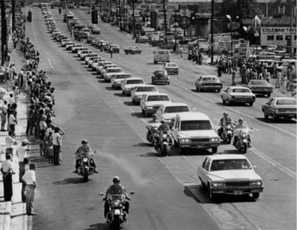 1977-ci ildə başqa bir "kral" olan Elvis Preslinin dəfn mərasimi 23789 dollara başa gəldi. Müğənninin ölüm xəbəri qəzetlərdə çıxanda, iki gün ərzində 25 min fanat onun Memfisdəki malikanəsini mühasirəyə aldı. Möhtəşəm mərasimin pulunu qohumları mərhumun öz hesabına ödəyib, bəziləri hətta yaxşıca pul da qazana biliblər. Dəfn mərasimi mətbuata qapalı keçirildi, lakin Preslinin yaxın qohumlarından biri müğənninin tabutdakı cəsədinin şəklini 18 min dollara satdı. Üzərində şəkli olan jurnal isə 6,5 milyon nüsxə satılıb.