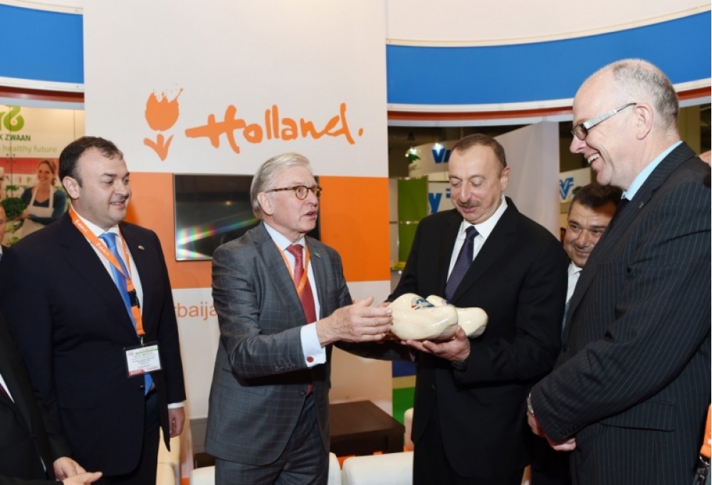 Azərbaycanda keçirilən bu sərgiyə böyük maraq göstərən ölkələrdən biri də Hollandiyadır. Bu ölkənin Bakı sərgisindəki milli stendində yeddi müxtəlif şirkət təmsil olunub. Prezident İlham Əliyevə məlumat verildi ki, bu şirkətlər istehsalda innovativ texnologiyalardan istifadə etməklə ənənəvi keyfiyyəti qoruyub saxlayır. Buna görə də onların məhsullarına beynəlxalq bazarlarda böyük tələbat var. Hollandiya stendi ilə tanışlıq zamanı dövlətimizin başçısına hədiyyə təqdim edildi.