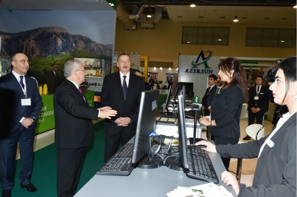 Kənd təsərrüfatı naziri Heydər Əsədov dövlətimizin başçısına məlumat verdi ki, XXII Beynəlxalq qida sənayesi sərgisində 34 ölkədən 313 şirkət təmsil olunur. X dəfə keçirilən Azərbaycan Beynəlxalq kənd təsərrüfatı sərgisinə də dünyada maraq artmaqdadır. Sərgi iştirakçılarının 67 faizi xarici şirkətlərdir.