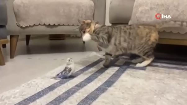 Ərzurumlu ailə 4 aylıqkən sahibləndikləri balaca pişiyə Şəkər adını veriblər. Halbuki onların evlərində illərdir ki, Maviş adlı tutuquşu da var. Əvvəlcə ailə pişiyi və quşu ayrı otaqlarda saxlayıblar.