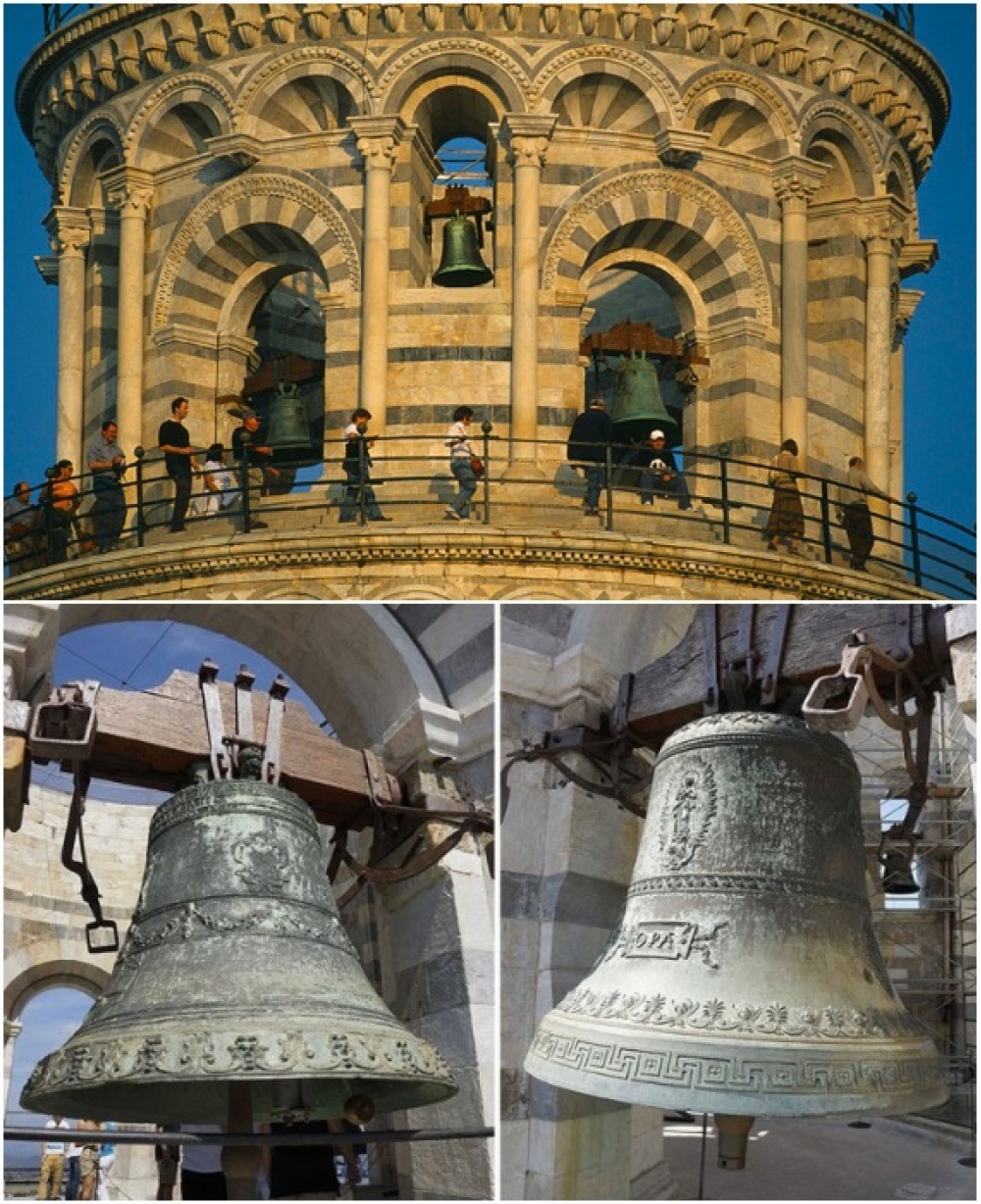 Piza qülləsinin əyilməsinin əsrlər boyu hər kəsi maraqlandırmasına baxmayaraq, az adam bilir ki, onun yuxarı hissəsində hər biri musiqi əsaslı nota uyğun gələn 7 zəng var. Yalnız nadir hallarda zəng çalırlar. Məqsəd "əyilən" şah əsərinin əyilməsinə diqqəti gücləndirmək məqsədi daşıyır. Bundan əlavə,qüllənin içərisində bir lobbinin olduğunu iddia edənlər üçün ən böyük məyusluq onun boş olduğunu öyrənmək olacaq.