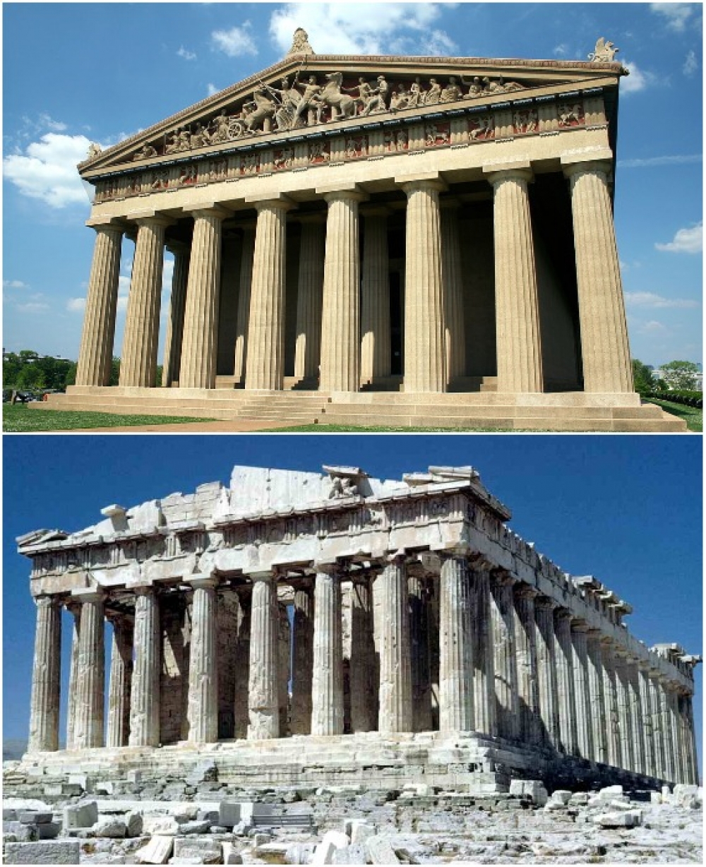 Afina Akropolunda yerləşən qədim məbəd olan Parthenon öz memarlıq dəqiqliyi ilə məşhurdur. Onun strukturunda düz xətlər olmasa da, hər bir üfüqi elementdə Parthenonun vizual cəlbediciliyini artıran bir qədər yuxarı əyrilik (entaz) var. Onu da qeyd etmək lazımdır ki, əzəmətli məbəd təkcə qədim yunanlar tərəfindən istifadə edilməmişdir. Burada Bizans İmperiyasının son əsrlərində Müqəddəs Məryəm Xristian Kilsəsi yerləşmiş, daha sonra Osmanlıların gəlişi ilə məscid kimi fəaliyyət göstərmişdir.