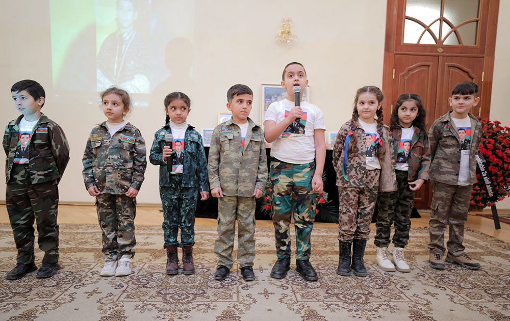 Sonra Həzi Aslanov adına Ordu İdeoloji və Mədəniyyət Mərkəzinin solistlərinin və məktəbilər tərəfindən şəhidlərimizə həsr olunan şeirlər, vətənpərvərliyi və qəhrəmanlığı tərənnüm edən musiqilər səsləndirilib.