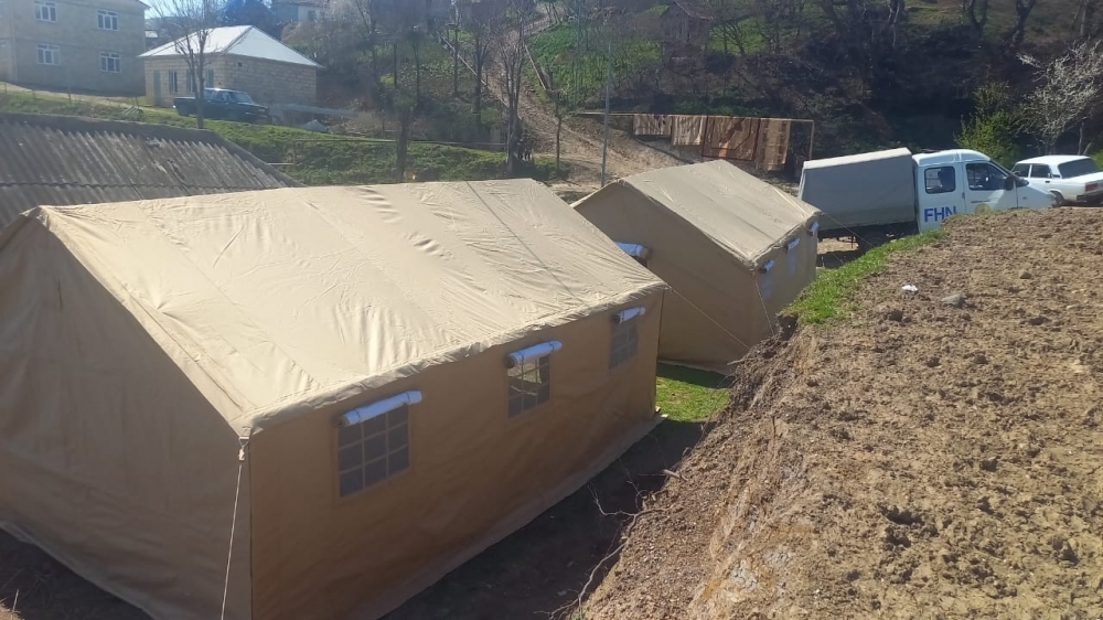 FHN-dən "İki sahil"ə verilən xəbərə görə, Bununla əlaqədar nazirliyinin Cənub Regional Mərkəzinin əməkdaşları tərəfindən ailə üçün müvəqqəti yaşayış məqsədilə ailə üzvlərinin sayı nəzərə alınaraq 2 ədəd çadır ev qurularaq vətəndaşa təhvil verilib.