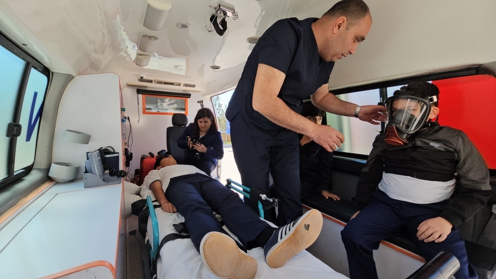 Sonra təlimin praktiki hissəsinə start verilib. Tədbirdə şərti yanğın zamanı “Həyəcan” siqnalı verildikdən sonra FHN-in yanğınsöndürənləri operativ qaydada hadisə yerinə çataraq, “yanğınla mübarizə” tədbirlərinə başlayıblar. Şərti yanğın baş vermiş məktəbdə təxliyə planına uyğun olaraq, şagirlərin və müəllimlərin təhlükəsiz yerə təxliyəsi həyata keçirilib, şərti xəsarət almış məktəblilərə “ilkin yardım göstərilib”.