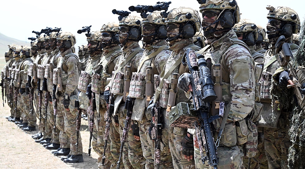 Sonra təlim meydanında xüsusi təyinatlıların istifadəsində olan müasir silah və texnikaya baxış keçirilib. Nazirliyin rəhbər heyəti komanda müşahidə məntəqəsinə gələrək xüsusi təyinatlıların nümayiş dərslərini izləyib. Daha sonra Müdafiə Nazirliyinin rəhbərliyi şəxsi heyət qarşısında çıxış edib. Xüsusi təyinatlıların Vətən müharibəsində və digər əməliyyatlarda göstərdiyi şücaət və qəhrəmanlıqların Azərbaycan Respublikasının Prezidenti, Silahlı Qüvvələrin Ali Baş Komandanı cənab İlham Əliyev tərəfindən yüksək qiymətləndirildiyi qeyd olunub.