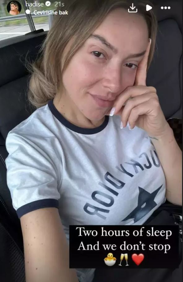 14,7 milyon izləyicisi olan “İnstagram” səhifəsində makiyajsız görünüşünə foto paylaşan Hadisə "İki saat yuxu və biz dayanmırıq" mesajını yazıb.