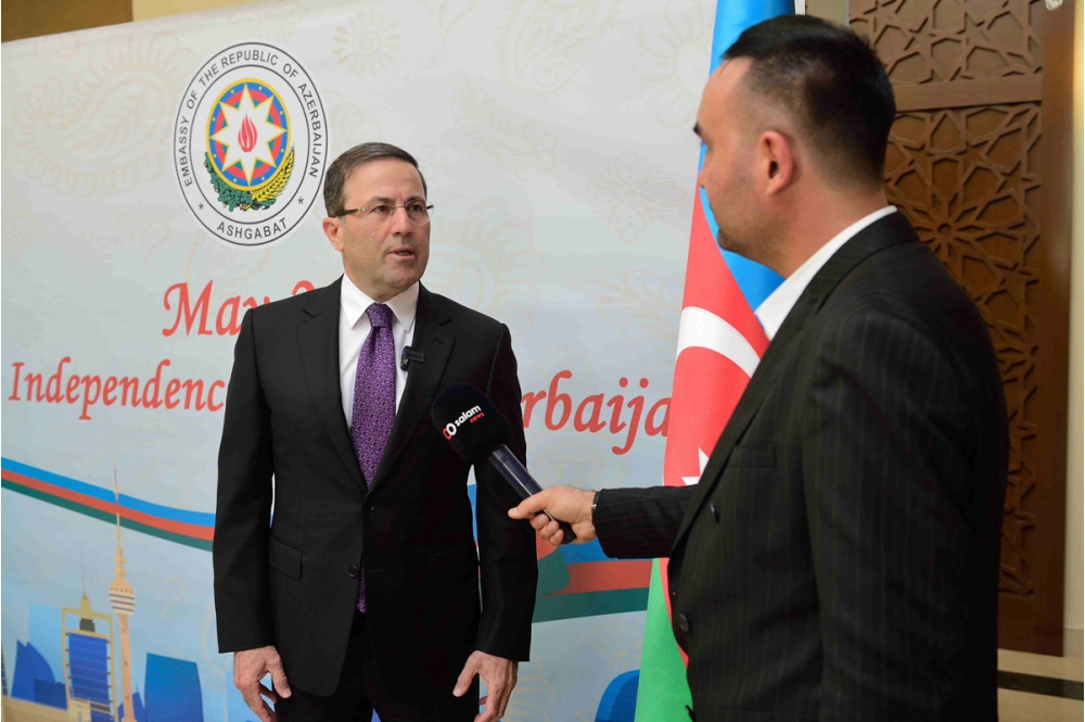Azərbaycanla Türkmənistan arasındakı ikitərəfli münasibətlərə toxunan Səfir, son zamanlar iki ölkə arasında ali səviyyədə həyata keçirilən səfərlərin, beynəlxalq səviyyəli tədbirlər çərçivəsindəki görüşlərin intensiv xarakter aldığını, bunun da strateji münasibətlərimizin daha da möhkəmlənməsinə öz töhfəsini verdiyini vurğulayıb. Ötən il ticarət dövriyyəsinin 75 faiz artdığı, ticarət dövriyyəsinin həcminin 800 milyon ABŞ dollarına yaxın olduğunu nəzərə çatdırıb, münasibətlərimizin inkişafında Birgə Hökumətlərarası Komissiyanın mühüm əhəmiyyət kəsb etdiyini bildirib.