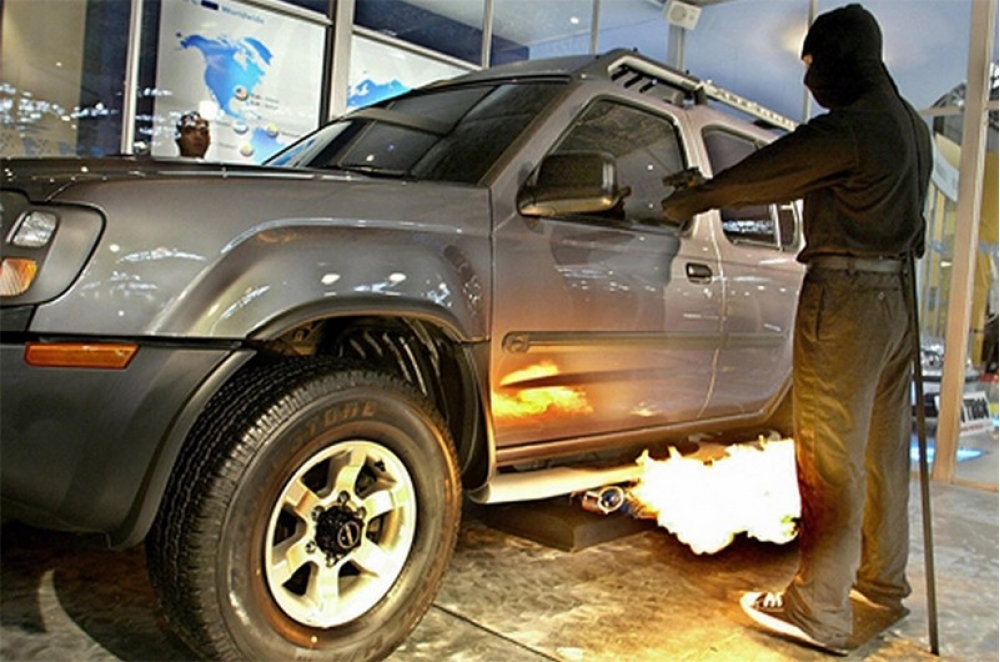 Cənubi Afrikada qanuni olaraq “blaster” adlı xüsusi cihaz ala bilərsiniz. Bu, uzunluğu 20 metrə qədər olan, xüsusi olaraq avtomobilə quraşdırmaq üçün nəzərdə tutulmuş alov qurğusudur. Atəş zamanı o, maşının yanlarına iki alov jetini atır. Eyni zamanda, avtomobilin üzlüyünə heç bir ziyan dəymir. Bir vaxtlar Cənubi Afrikada ildə 13000-ə qədər avtomobil oğurlanırdı. Buna görə də hökumət öz vətəndaşlarına avtomobil sahibini avtomobilindən çıxarmağa çalışan hər kəsi öldürmək hüququ verdi. Blasterin ixtiraçısı israr edir ki, onun qurğusu təcavüzkarın həyatına son qoymur, sadəcə onu kor edir. "Blaster" 1998-ci ildə satışa çıxarıldı, lakin satışı zəif oldu.