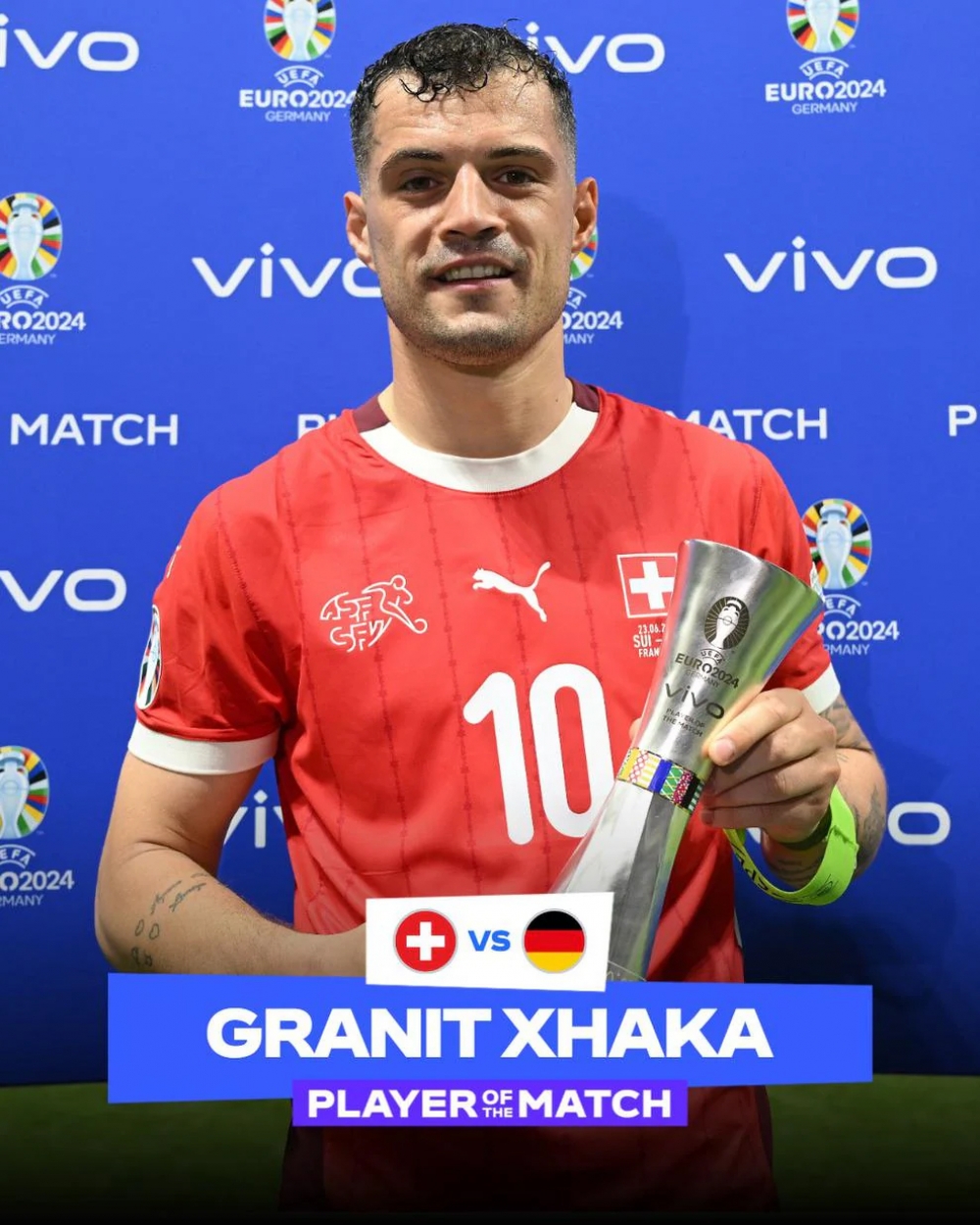 Almaniyada keçirilən Avropa çempionatının qrup mərhələsinin III turunda baş tutan İsveçrə - Almaniya matçının (1:1) ən yaxşı futbolçusu müəyyənləşib.