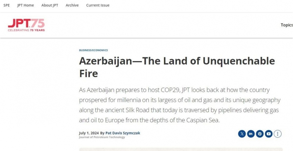 “İki sahil” xəbər verir ki, “Azərbaycan – sönməz odlar yurdu” sərlövhəli nəşrdə xüsusilə qeyd olunur: “Azərbaycanın COP29-a ev sahibliyi etdiyi bir vaxtda, JPT ölkənin nəhəng neft və qaz ehtiyatları, boru kəmərləri ilə Xəzər dənizinin dərinliklərindən qazı və nefti Avropaya apardığı qədim İpək Yolu boyunca unikal coğrafi yerləşmə sayəsində əldə etdiyi tərəqqi yoluna nəzər salır”.
