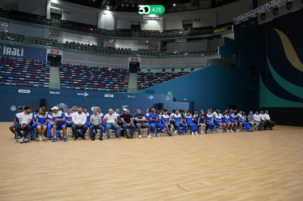 “İki sahil” xəbər verir ki, Milli Gimnastika Arenasında təşkil edilən görüş Dövlət Himninin səsləndirilməsi ilə başlayıb.