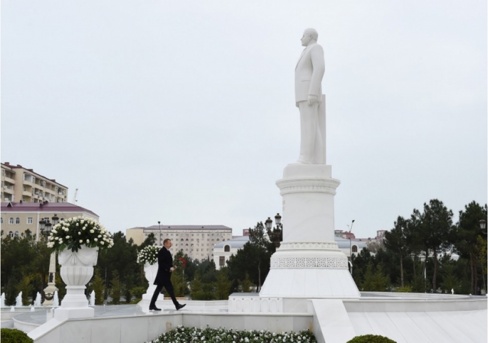AZƏRTAC xəbər verir ki, dövlətimizin başçısı ümummilli lider Heydər Əliyevin şəhərin mərkəzində ucaldılmış abidəsini ziyarət edərək önünə gül dəstəsi qoydu.