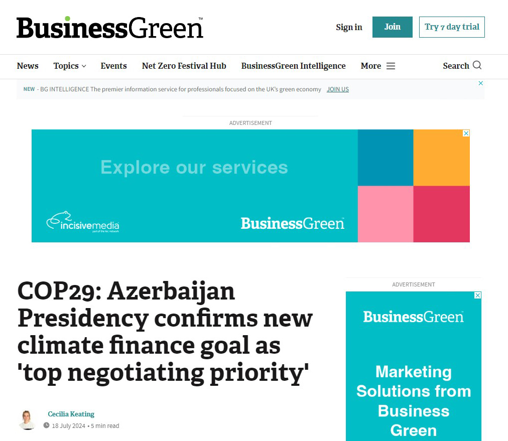 “İki sahil” xəbər verir ki, Britaniyanın “Business Green” nəşrində iyulun 18-də dərc olunan məqalədə yazılır:
