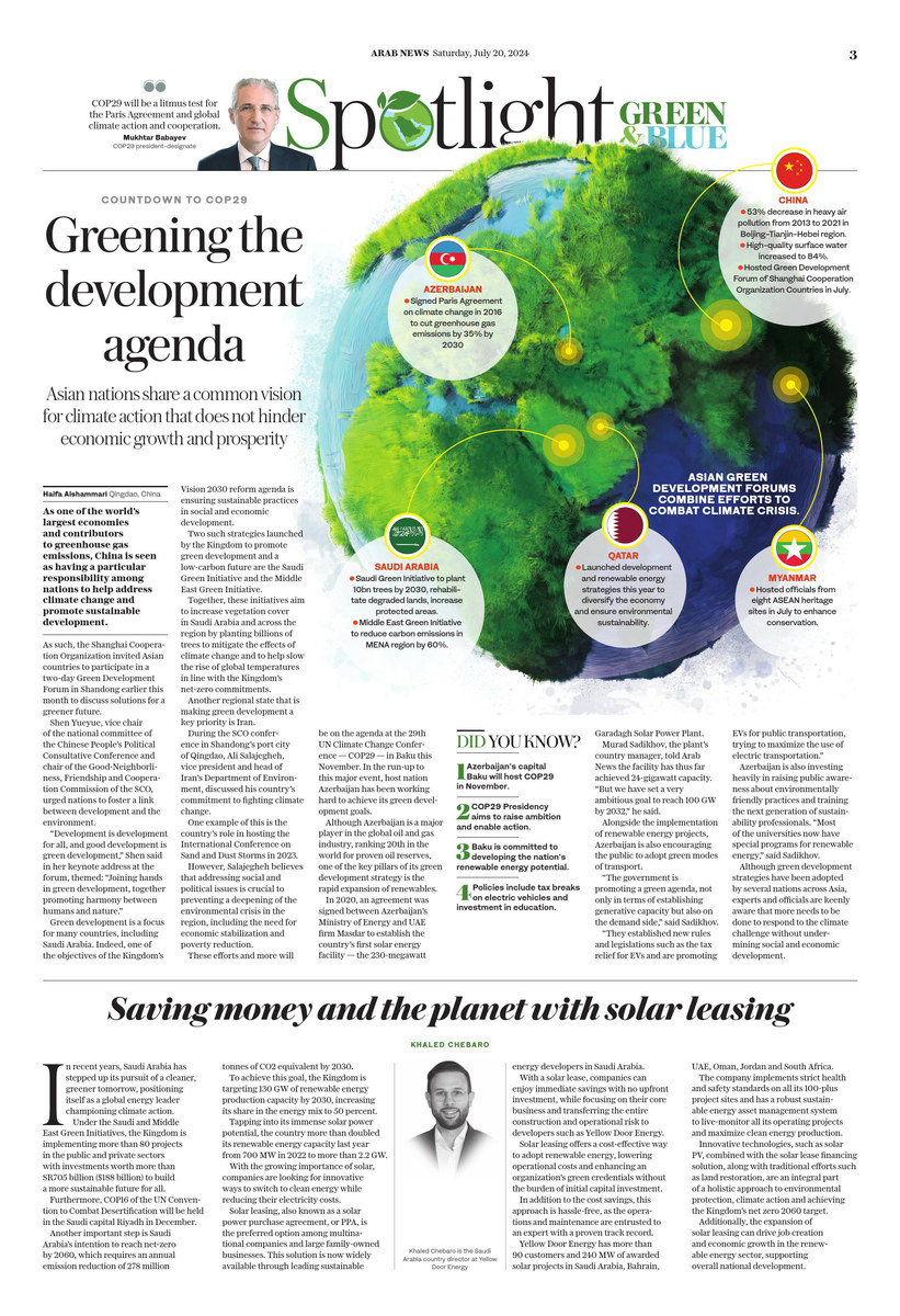 Diqqətə çatdırılıb ki, 2020-ci ildə Azərbaycanın Energetika Nazirliyi ilə BƏƏ-nin “Masdar” şirkəti arasında ölkədə ilk günəş enerjisi qurğusunun – 230 meqavat gücündə Qaradağ Günəş Elektrik Stansiyasının yaradılmasına dair saziş imzalanıb: “Layihə 550 hektar ərazini əhatə edir və hazırda günəşin birbaşa işığını və yerdən günəş işığının əksini çəkən 570 min ədəd ikiüzlü fotovoltaik panellərə malikdir”.