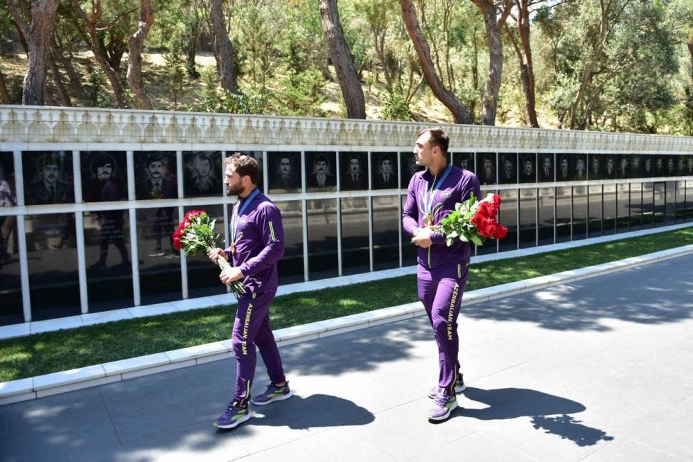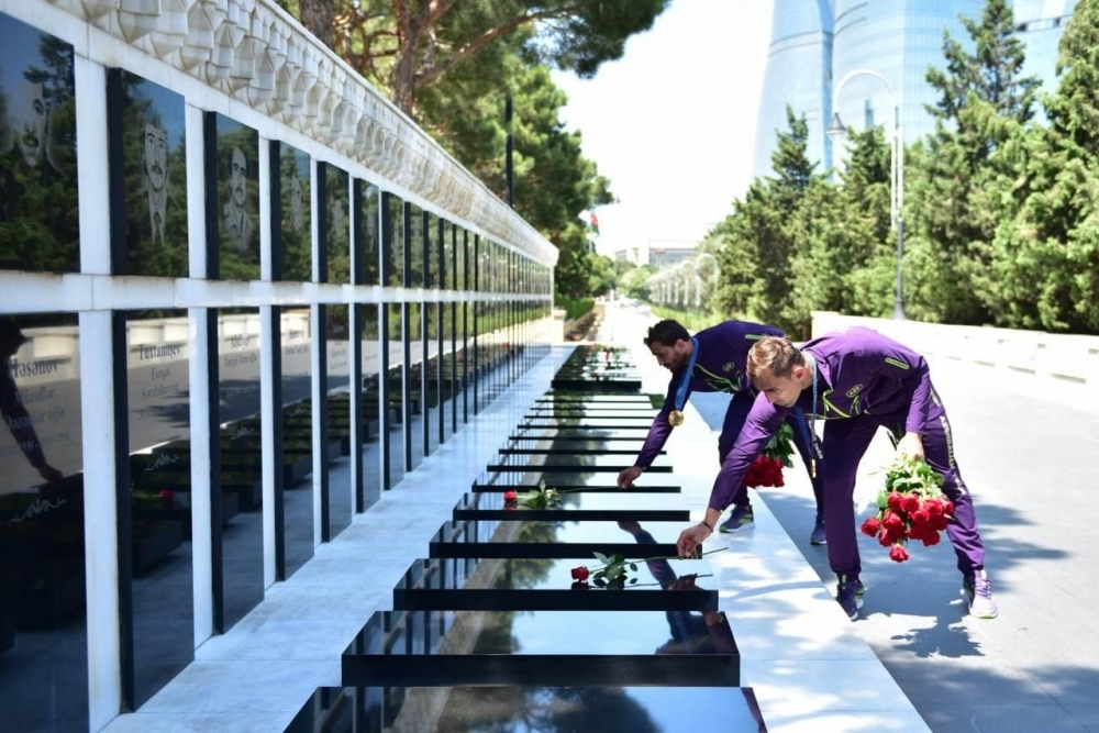 Daha sonra çempionlar Şəhidlər xiyabanına gedərək Azərbaycanın müstəqilliyi və ərazi bütövlüyü uğrunda canlarından keçmiş Vətən övladlarının xatirəsini yad edib, məzarları üzərinə güllər düzüblər.