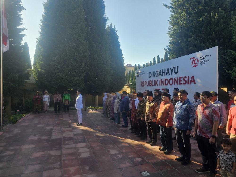 “İki sahil” xəbər verir ki, tədbir indoneziyalılar tərəfindən “Indonesia Raya” dövlət himninin səsləndirilməsi və “Bayraq qaldırma mərasimi” ilə başlayıb.