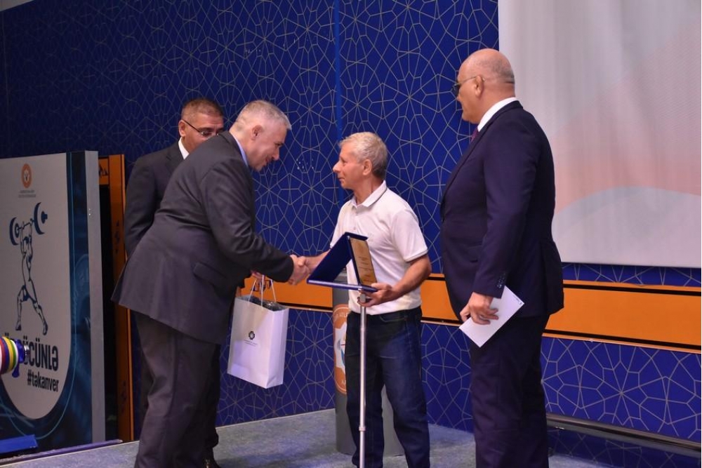 Daha sonra Azərbaycan ağırlıqqaldırmasının inkişafında xüsusi rolları olmuş şəxslərin yubileyləri məqsədilə təltifat mərasimi təşkil edilib. Sabiq ağırlıqqaldıran Akif Alıyev və əməkdar məşqçi Vahid Nəzərov 65, Beynəlxalq dərəcəli hakim Namiq Nəcəfov 70, AAF-ın sabiq prezidenti Şüa Hüseynova isə 85 yaşı münasibətilə plaketlər və xüsusi, qiymətli hədiyyələr təqdim edilib. Mərasimdə AAF-ın prezidenti Kamran Nəbizadə və Avropa Ağırlıqqaldırma Federasiyasının prezidenti Antonio Konflitti iştirak ediblər.