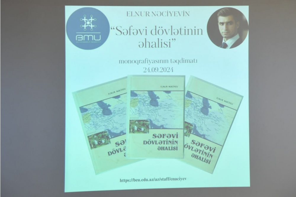 Bakı Mühəndislik Universitetində (BMU) Ümumi fənlər kafedrasının baş müəllimi, tarixçi alim, gənc tədqiqatçı Elnur Nəciyevin “Səfəvi dövlətinin əhalisi” adlı monoqrafiyasının təqdimatı keçirilib.