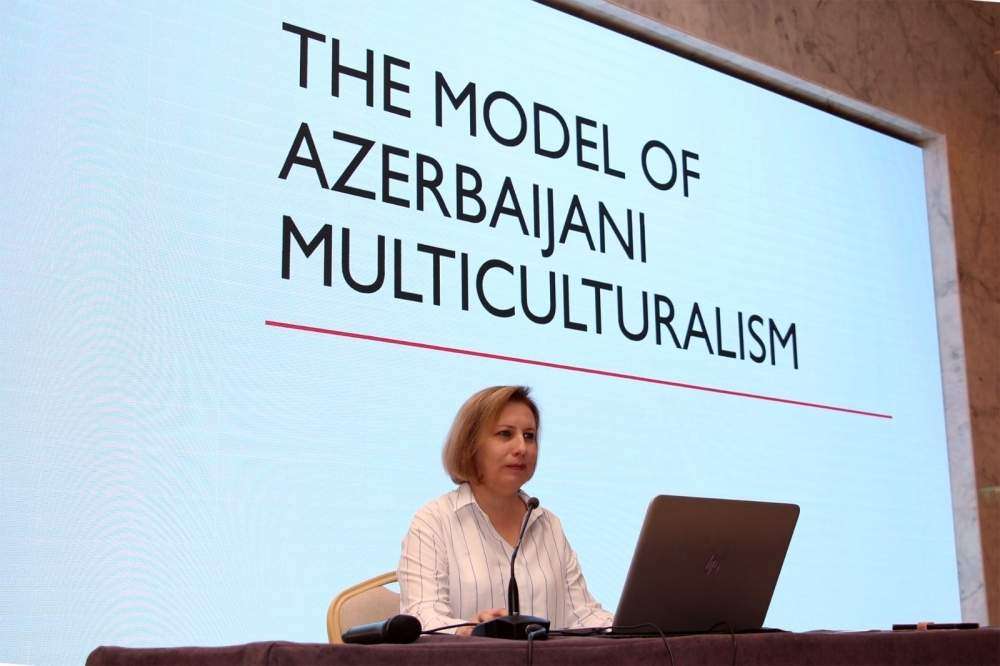 İrina Kunina “Azərbaycan Multikulturalizm modelinin xüsusiyyətləri” mövzusunda mühazirəsində vurğulayıb ki, Azərbaycan müxtəlif sivilizasiyaların qovuşduğu məkan olaraq, əsrlər boyu milli-mədəni rəngarənglik mühitinin formalaşdığı, ayrı-ayrı millətlərin və konfessiyaların nümayəndələrinin sülh, əmin-amanlıq, qarşılıqlı anlaşma və dialoq şəraitində yaşadığı diyar kimi tanınmışdır. Multikulturalizm və tolerantlıq tarixən azərbaycanlıların həyat tərzi olmuş, bu gün isə milli kimliyindən, dilindən, dinindən asılı olmayaraq Azərbaycan dövlətinin hər bir vətəndaşının gündəlik həyat tərzinə çevrilmişdir. O diqqətə çatdırıb ki, Azərbaycan multikulturalizminin siyasi əsasları Azərbaycan Respublikasının Konstitusiyasının bəndlərində, qanunvericilik aktlarında, fərman və sərəncamlarda öz əksini tapmışdır. Mövcud milli-mədəni müxtəliflik və etnik-dini dözümlülük mühiti onu çoxmillətli, çoxkonfessiyalı diyar kimi dünya miqyasında mədəniyyətlərarası dialoqun bənzərsiz məkanı etmişdir.