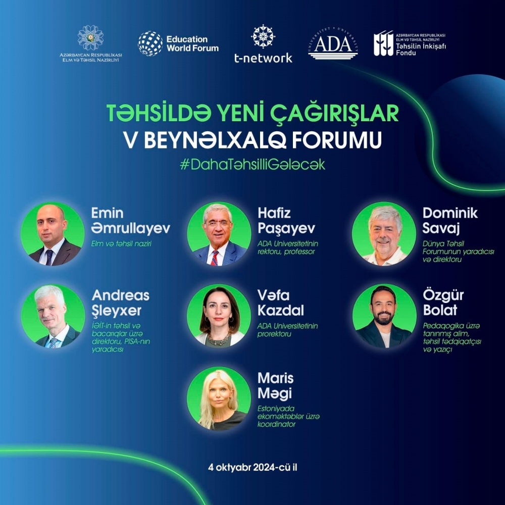 Qeyd edilib ki, “Yaşıl dünya naminə həmrəylik ili”nə həsr edilən və COP29 ideyasını özündə ehtiva edən beynəlxalq forum “Daha təhsilli gələcək” devizi ilə baş tutacaq. Forumun əsas məruzəçiləri Dünya Təhsil Forumunun direktoru Dominik Savaj ilə İqtisadi Əməkdaşlıq və İnkişaf Təşkilatının təhsil və bacarıqlar üzrə direktoru Andreas Şleyxerdir.