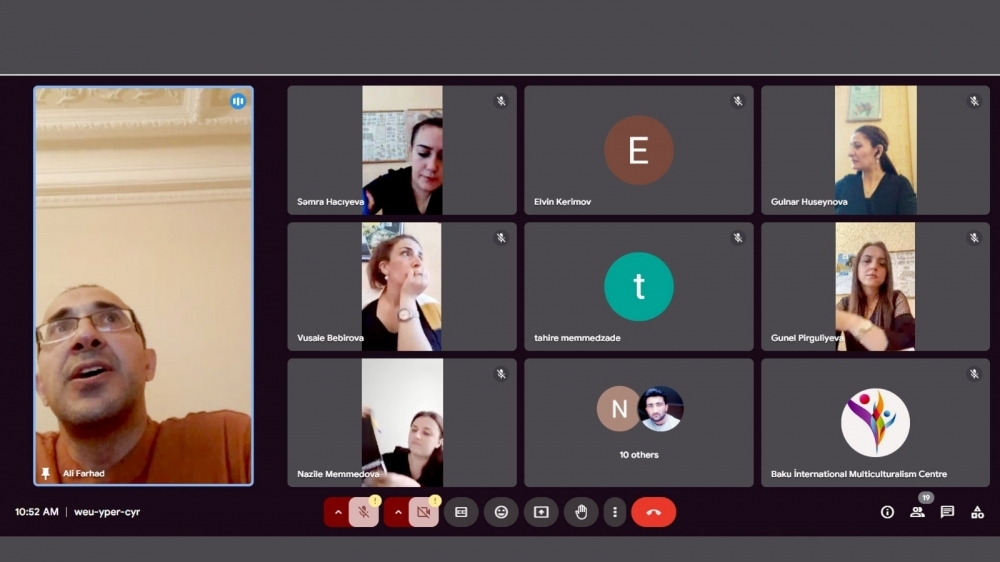 Bakı Beynəlxalq Multikulturalizm Mərkəzinin mətbuat xidmətindən “İki sahil”ə bildirilib ki, onlayn qaydada təşkil olunan treninq 7-11 oktyabr tarixlərini əhatə edib. Treninq çərçivəsində Bakı Beynəlxalq Multikulturalizm Mərkəzinin icraçı direktoru Rəvan Həsənov, Azərbaycan İlahiyyat İnstitutunun rektoru Aqil Şirinov, BBMM-in İnformasiya təminatı və sənədlərlə iş şöbəsinin müdiri Yadigar Məmmədli, Analitika şöbəsinin müdiri Rəşad İlyasov, Azərbaycan Tarix Muzeyinin İctimaiyyətlə əlaqələr şöbəsinin əməkdaşı Əli Fərhadov, Azərbaycan Dillər Universitetinin Fəlsəfə və ictimai elmlər kafedrasını müəllimi Leyla Haciyeva, Mərkəzin baş məsləhətçisi Araz Qurbanov, aparıcı məsləhətçi Billurə Aslanova, məsləhətçi Tahirə Ələsgərova mühazirə oxuyublar. İştirakçılara “Azərbaycan multikulturalizmi fənninin predimeti və əhəmiyyəti”, “Dünya ölkələrində multikulturalizm modelləri”, “Azərbaycanın ictimai-fəlsəfi fikir tarixində tolerantlıq və multikulturalizm ideyaları”, “Çoxkonfessiyalıq və Azərbaycan Respublikasının multikulturalizm siyasəti”, “Azərbaycançılıq və multikulturalizm”, “Müasir dövrdə Azərbaycanda multikulturalizm” və digər mövzularda mühazirələr təqdim edilib.