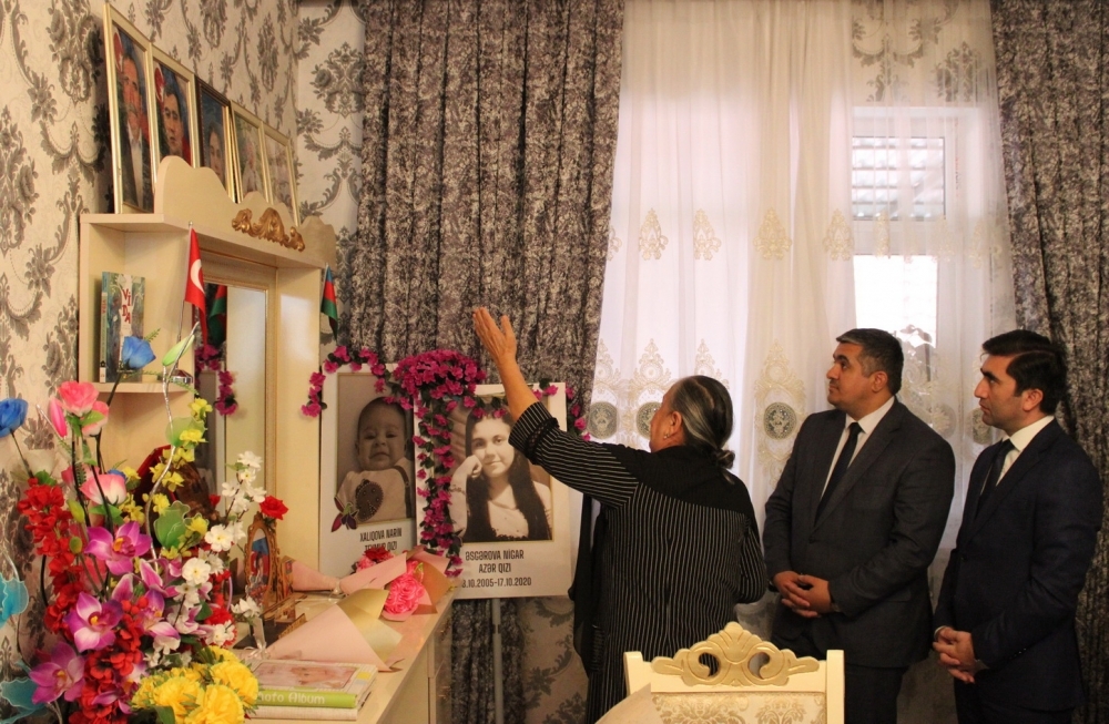 Sonra Azərbaycanın Milli Qəhrəmanı Natiq Qasımovun anası və 17 oktyabr 2020-ci il tarixində Ermənistanın “Skat” ballistik raketləri ilə hücumu nəticəsində ailəsinin 5 üzvünü itirmiş Əsgərovlar ailəsi ziyarət edilib.