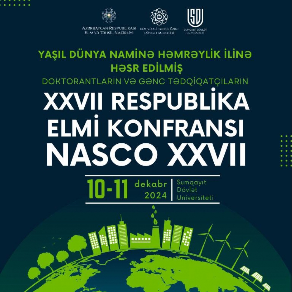 Sumqayıt Dövlət Universitetində 10-11 dekabrda doktorantların və gənc tədqiqatçıların XXVII Respublika elmi konfransı (NASCO XXVII) keçiriləcək.
